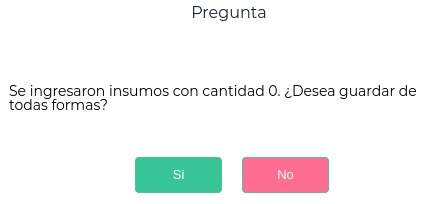 El sistema, al momento de guardar, indicará mediante un pop up esta situación, para que el usuario determine si olvidó ingresar una cantidad o no: