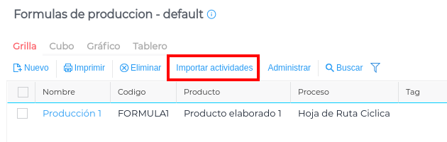 Dentro del maestro de Fórmulas de Producción clickear en Importar actividades