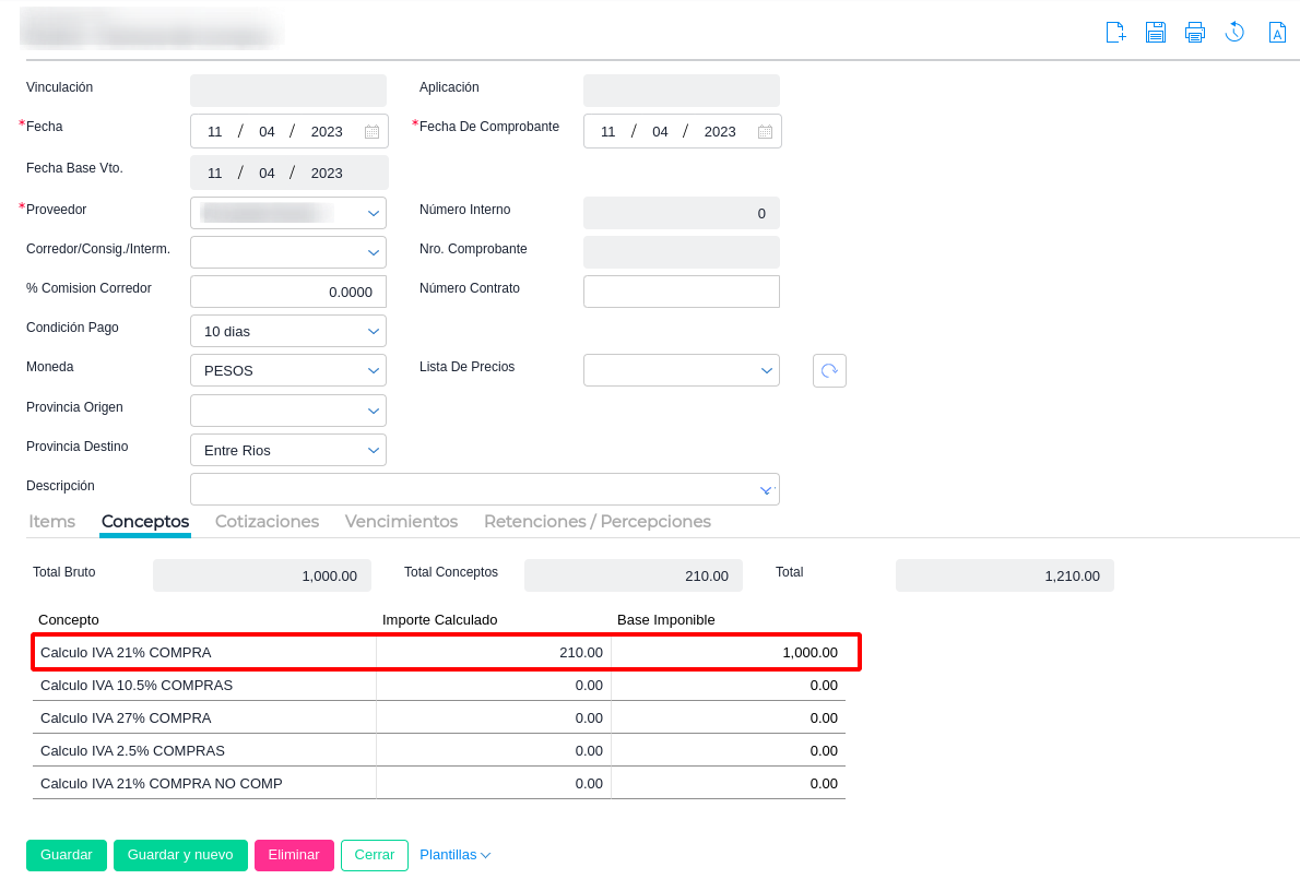 Ingresar en la categoría fiscal correspondiente al proveedor; en este caso, Exento.