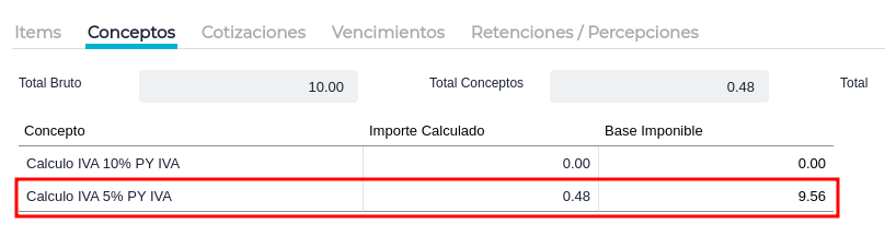 Buscar el concepto “calculo IVA 5% PY IVA INCLUIDO” e ingresar