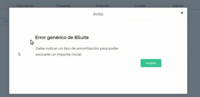 Al intentar agregar una factura de compra a un bien de uso, el sistema arroja el siguiente mensaje: “Debe indicar un tipo de amortización para poder asociarle un importe inicial”.
