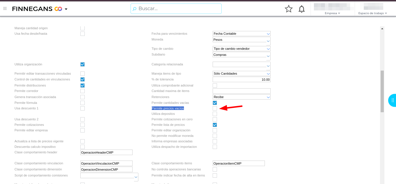 - Ingresar a Menú → Configuración-> Diseño del espacio de trabajo → Documentos → Tipos de documentos → " Factura de compra"