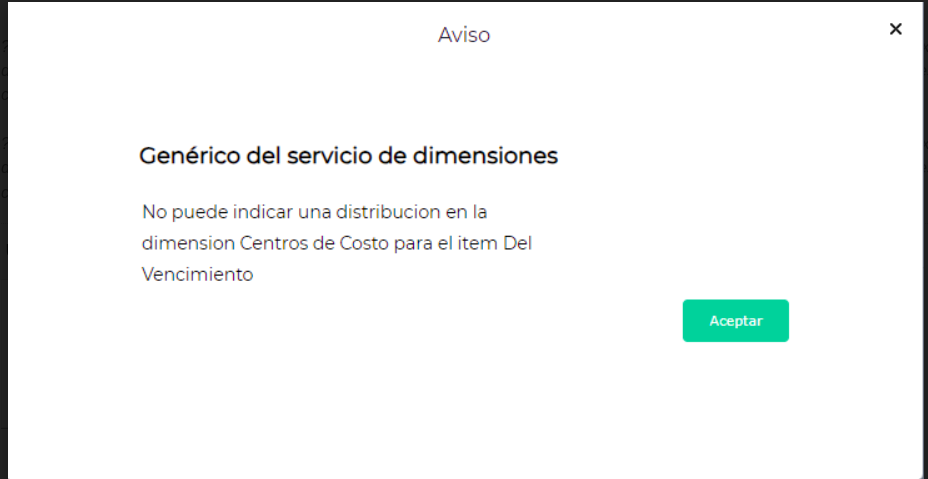Esto sucede cuando se selecciona una cuenta contable dentro de la solapa de “Vencimientos” que no posee una dimensión asignada.