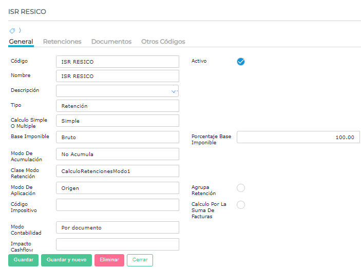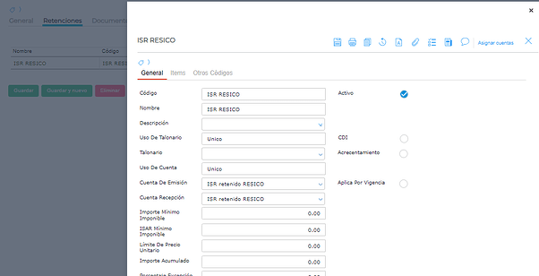Se debe crear el tipo de retención de ISR Resico.