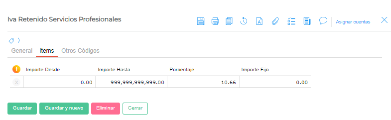 En la pestaña Retenciones, se debe agregar una retención donde se indicará el porcentaje del 10.66%