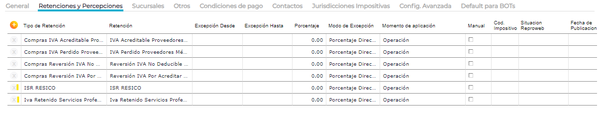 En los proveedores cuyo régimen fiscal corresponda con el RESICO, se deberán configurar las retenciones creadas anteriormente