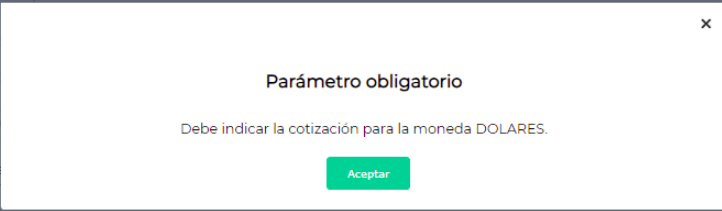 Si es necesario, agregar una cotización para la moneda “Dolar blue” completando los siguientes campos:- Moneda: Dolar blue