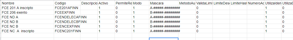 Si queres podes descargar el template aquí con los talonarios que necesitas para importarlos en tu base.