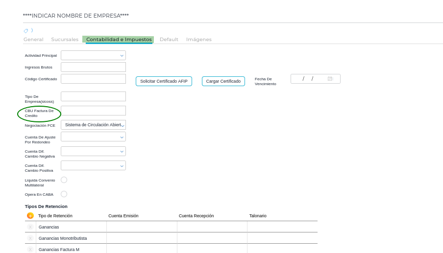 - Completar los datos de “CBU factura de crédito” en el maestro de empresas.