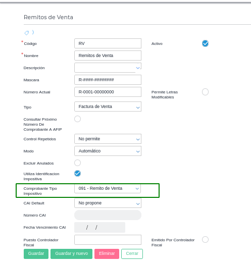 Para ello, los remitos, tienen que tener asociado un talonario asociado que “utiliza identificación impositiva” y el tipo de comprobante impositivo debe ser “091”.