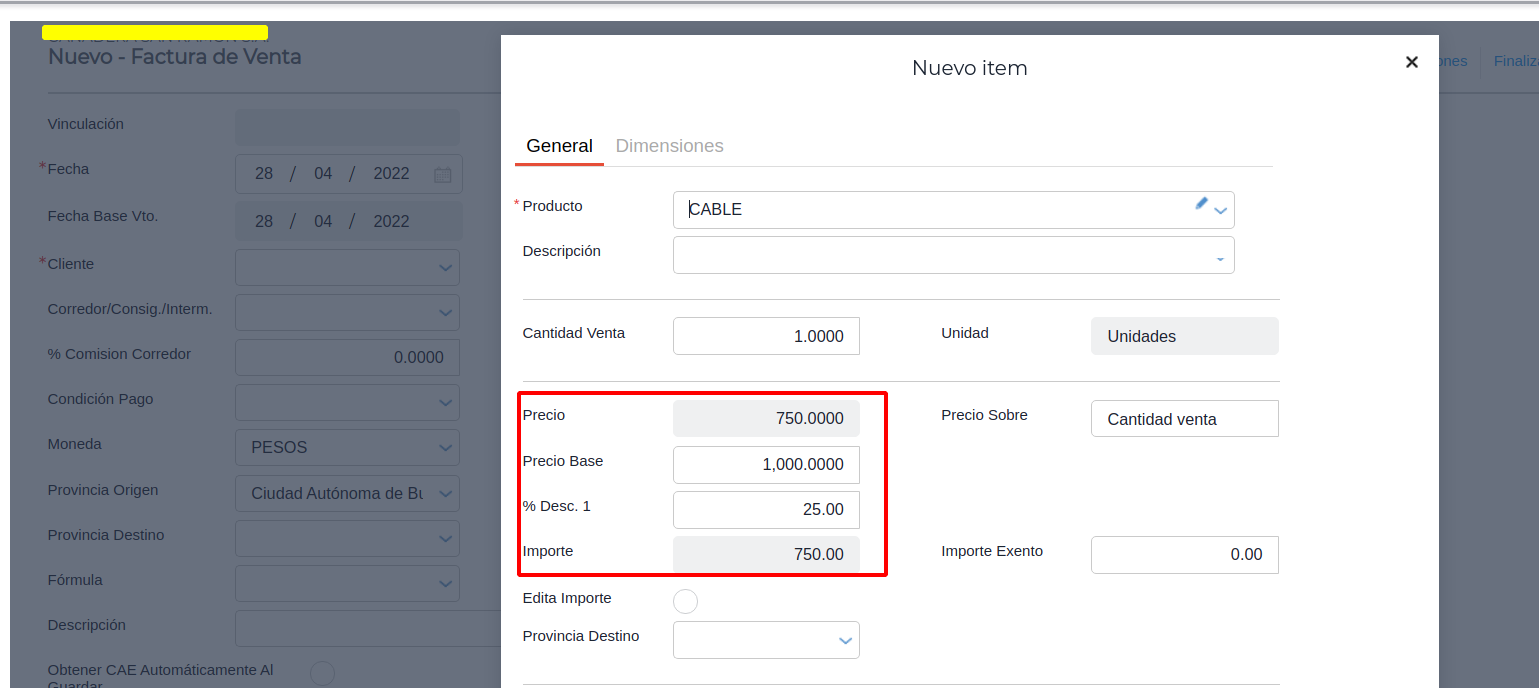 Cargar un producto, cargar cantidad de venta y precio base. Luego aplicar descuento al precio base