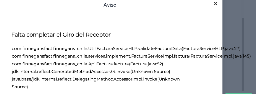 Al querer timbrar una factura electrónica en Chile, se emite el siguiente mensaje de error