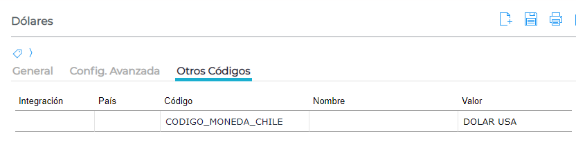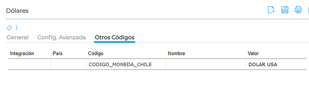 En el maestro de moneda se debe completar el código adicional CODIGO_MONEDA_CHILE según la siguiente tabla