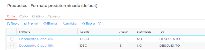 Se crea el concepto de productos DESCUENTOS para luego poder indicarlo en los productos de descuento global.