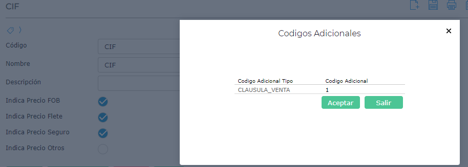 En el maestro de incoterm, se debe completar el código CLAUSULA_VENTA con el valor que corresponda según la tabla.