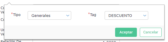 En los conceptos de Compra y Venta, se debe indicar el Concepto de Productos: Descuentos.