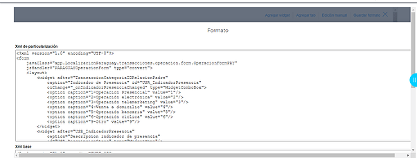 Para configurar el xml en maestros, se debe ingresar al mismo y luego presionar el botón Administrar. En la nueva pestaña que se abre presionar el botón Formato y luego → Edición Manual.