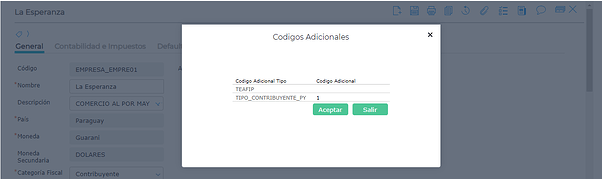 Ingresar a la view Configuraciones de localización Paraguay y completar los campos: