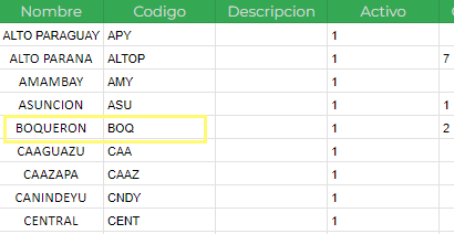 Los nombres de las localidades deben estar en mayúscula y tener el campo CÓDIGO SIFEN completo según la tabla