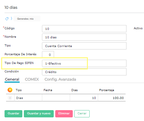 Completar el campo Tipo de pago SIFEN según corresponda: