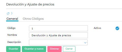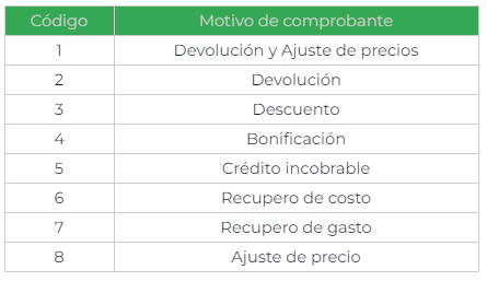 Deben existir los siguientes motivos de comprobante.
