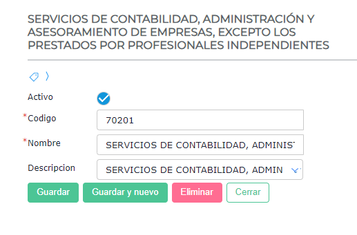 NOTA: La descripción debe estar en mayúsculas.