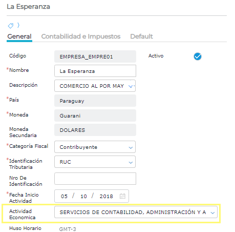 Completar el campo Actividad económica