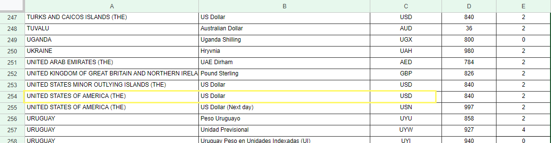 Completar el campo CÓDIGO SIFEN según corresponda con la tabla MONEDAS Importacion maestros Paraguay con el dato de la Columna C.