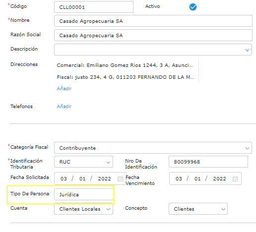 Completar una dirección de tipo FISCAL