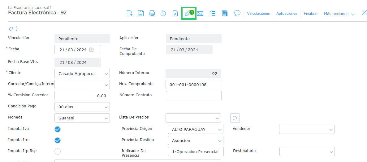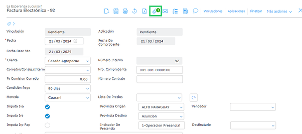 Se cargan los datos como cliente, condición de pago y los ítems que se van a facturar.