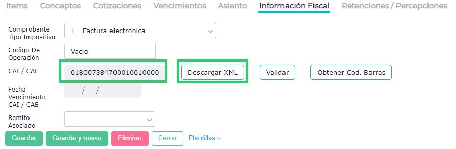 Luego de unos instantes, el sistema informa el CDC en el campo CAI/CAE.