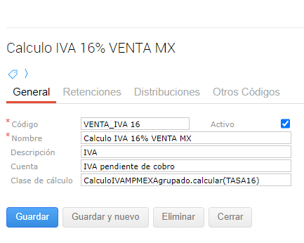Clase de cálculo: CalculoIVAMPMEXAgrupado.calcular(TASA16)