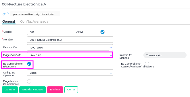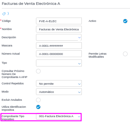 Y el comprobante tipo impositivo del talonario es comprobante electrónico y usa CAE: