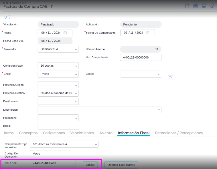 Mediante la funcionalidad Obligatoria Validación de CAE podrás establecer una validación de CAE obligatoria, previo a guardar un comprobante de compra. Para ello, el talonario de esa factura debe tener un comprobante tipo impositivo que sea comprobante electrónico y el campo Exige CAI/CAE debe tener alguna de las siguientes opciones: