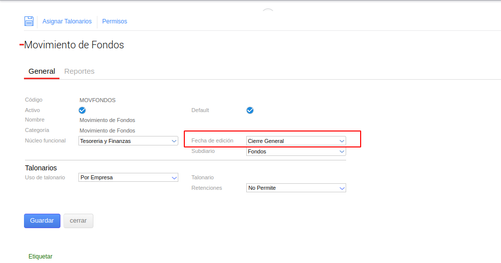 Ruta: Configuración → Empresas→ Fecha de Edición