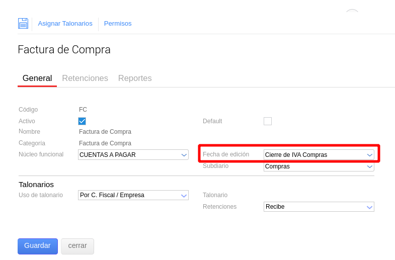 - Luego nos dirigimos al maestro de “Fechas de Edición” e ingresamos al cierre asignado al documento.