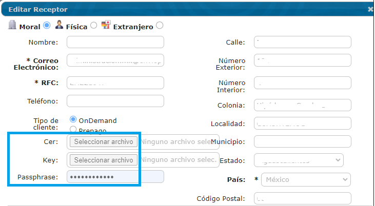 4 - Subir los certificados CER y KEY y completar el Passphrase