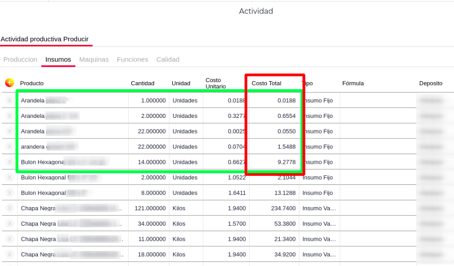 En la Fórmula de Producción, al cargar los insumos dentro de Actividad Productiva Producir figuran con decimales. Sin embargo, al consultar el cubo con los costos totales, figura sin decimales.