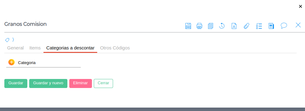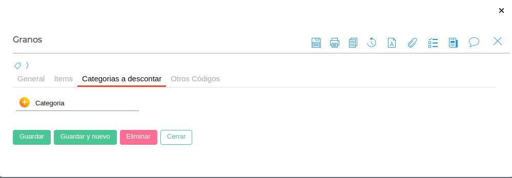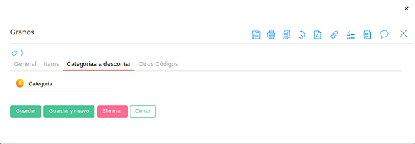 Solapa Categorías a descontar: