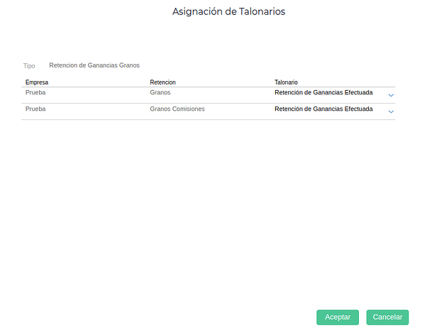 - Tipos de retención: indicar “Retencion de Ganancias Granos”