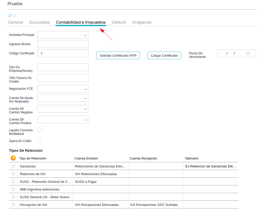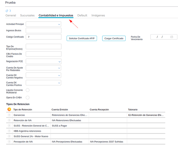 Configuración en ABM Empresa
