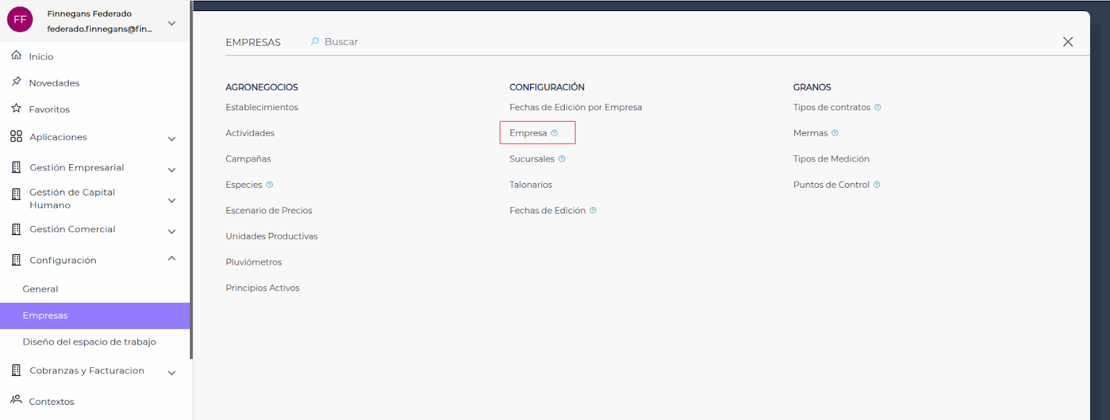 Seleccionar la empresa que se desee configurar: