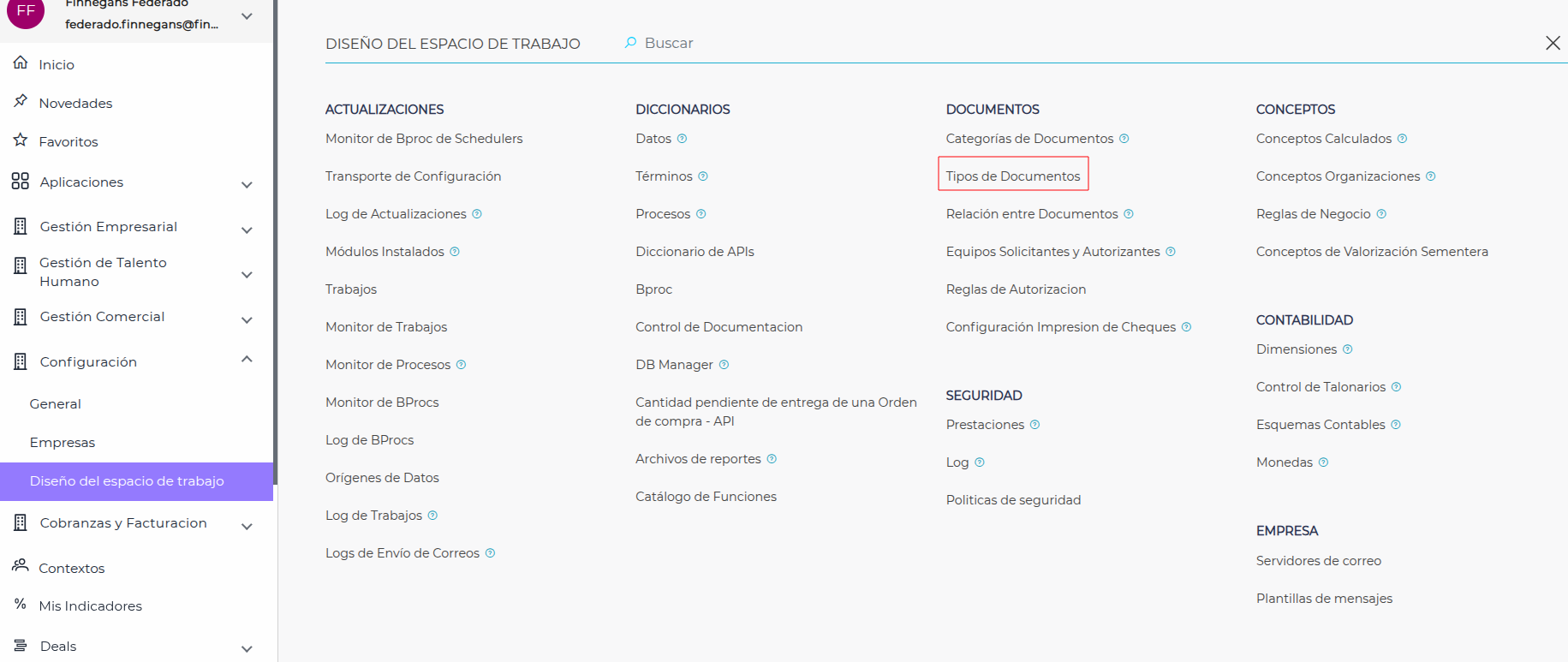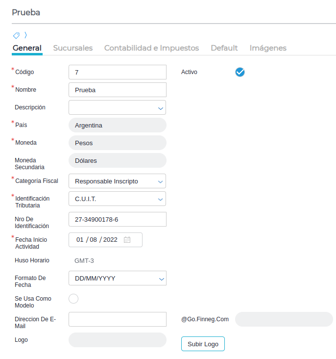 Gestión empresarial → Configuración → Empresas → Configuración → Empresa