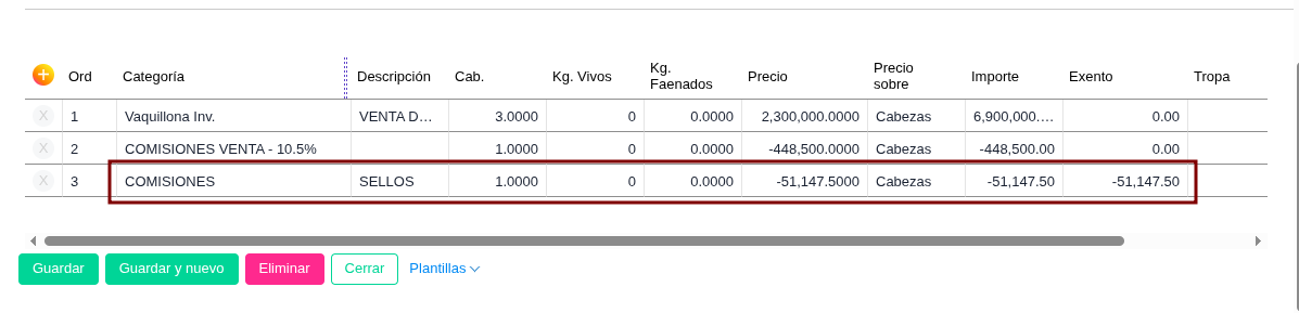 - en esta liquidación, el ítem/producto 3, es un gasto exento