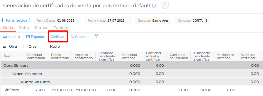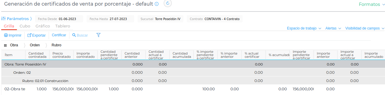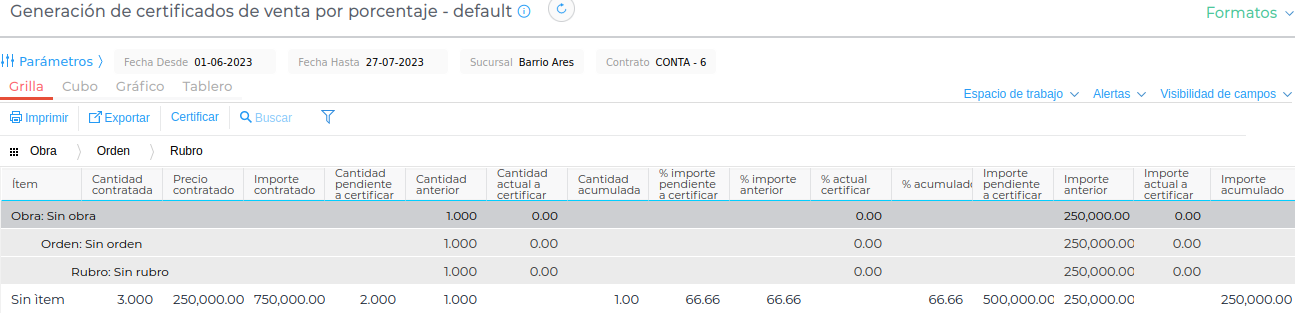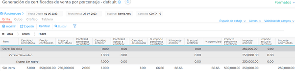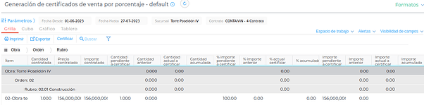 A través de esta funcionalidad, se agrega la posibilidad de crear los Certificados de Venta de Obra por cantidad o porcentaje en una grilla amena.