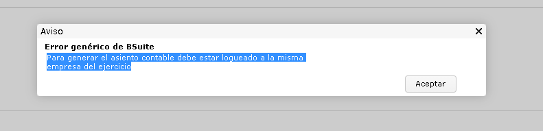 El sistema emite el mensaje “Para generar el asiento contable debe estar logueado a la misma empresa del ejercicio” a la hora de realizar un asiento en un ejercicio contable.