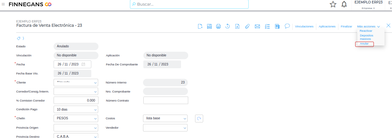 Anulación de facturas contradocumento - Generación de Notas de Crédito