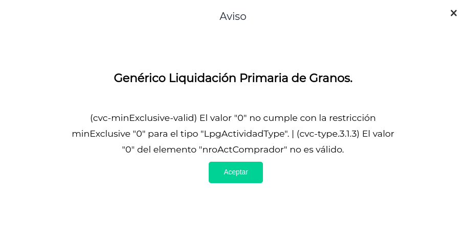 Al momento de obtener COE en una Liquidación de compra de granos aparece el siguiente aviso: