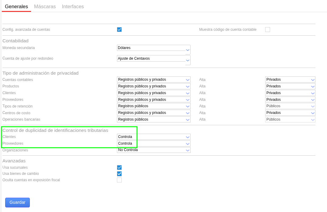 Al seleccionar esta opción, el sistema verificará que la identificación tributaria no se repita en ninguna de las dos bases de datos (proveedores y clientes), asegurando la integridad de los registros. Esta es la configuración recomendada para evitar este tipo de errores.