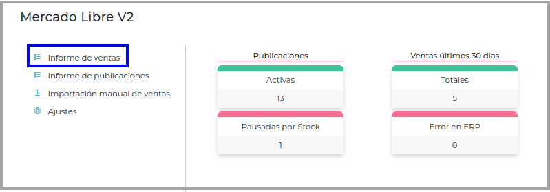 Ir a Menú → Aplicaciones → Mercado Libre → Informe de Ventas